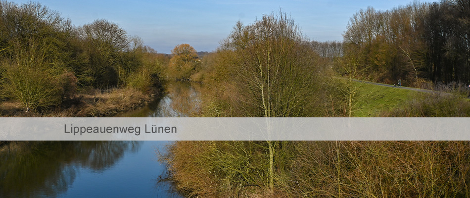 Schon länger ist der „Lippeauenweg“ (der offizielle Name ist komplizierter und viel länger) Teil dieser Internetseiten. Er führt in Form einer Acht östlich und westlich der Lünener Innenstadt auf beiden Seiten der Lippe entlang.