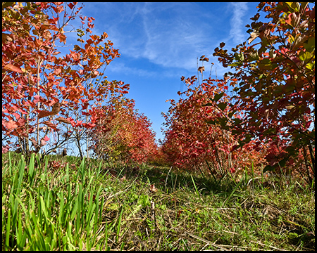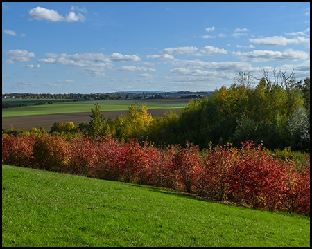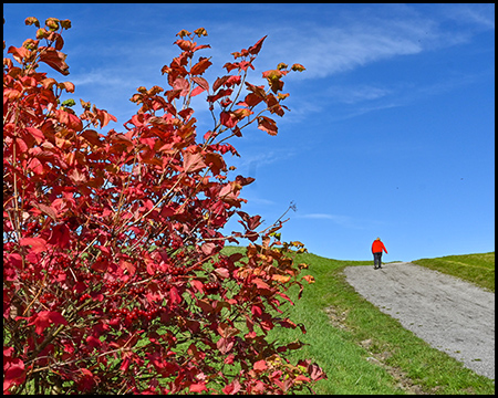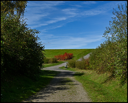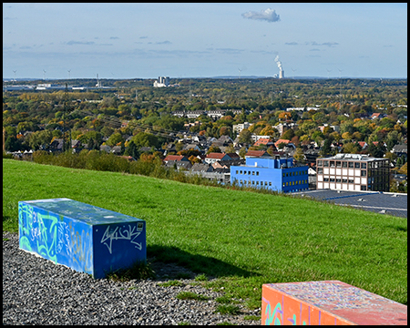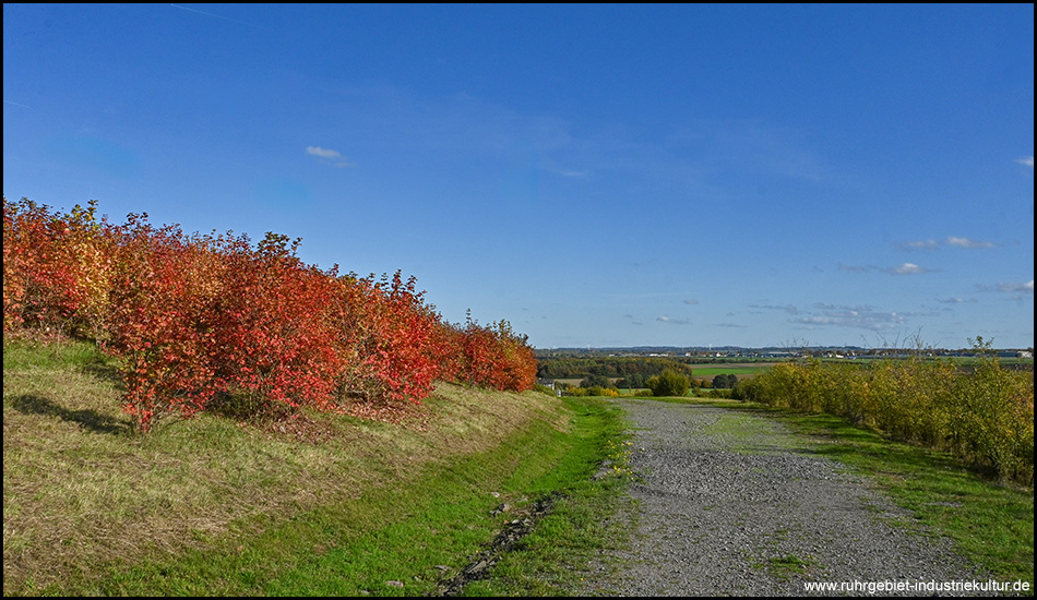 Der Aufstieg auf die Halde lohnt zu jeder Jahreszeit, wenn man eine halbwegs gute Sicht hat. Besonders schön ist es aber im Herbst. Dann färben sich die Bäume, so weit das Auge reicht, in bunten Farben. Es ist quasi ein „Westfalian Summer“. Büsche knapp unterhalb des Gipfelplateaus sind feuerrot, tragen rote Beeren und harmonieren perfekt zu einem strahlend blauen Herbsthimmel.