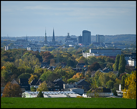 Am Horizont kann man den Verlauf der Lippe anhand der Kraftwerke zwischen Hamm und Datteln verfolgen. Da sind die Wassertürme am Hellweg in Hamm und das Lanstroper Ei in Grevel, dahinter das Schloss Cappenberg in Selm. Die Fördergerüste der Zeche Gneisenau (Doppelbock und Thomson-Bock), Minister Stein in Dortmund, Schacht Lerche in Kamen und Zeche Grimberg in Bergkamen sowie der Förderturm der Zeche Königsborn in Bönen. Die markante Stadtkirche in Unna und die mit der schiefen Spitze in Kamen. Die Silhouette der Innenstadt von Dortmund mit dem Dortmunder U und dem Florianturm im Westfalenpark. Die Halde Großes Holz und den Deusenberg mit seiner Photovoltaikanlage. Den Kugelspeicher am Fredenbaumpark. Das ist schon ganz schön viel. Man könnte geradezu Wahrzeichen-Bingo spielen.