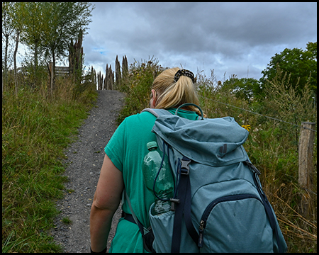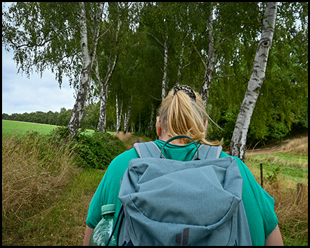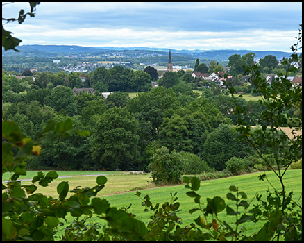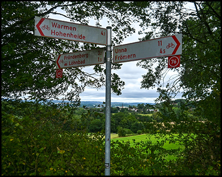 Es folgt nach einem Waldstück ein steilerer Anstieg, der aber nach kurzer Zeit bewältigt ist. Bald ist Hohenheide erreicht, ein kleiner Ort auf dem Haarstrang. Mit jedem Höhenmeter öffnen sich weite Ausblicke zurück ins Ruhrtal, das man eben noch durchwandert hat, und hinüber zu den Höhen des Sauerlandes.