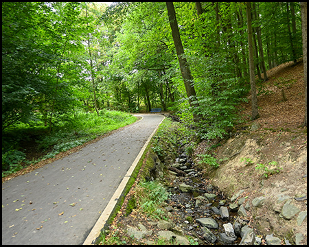 Weg Richtung Innenstadt am Ufer der Ruhr entlang. Auf der anderen Seite beginnt offiziell das Sauerland