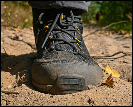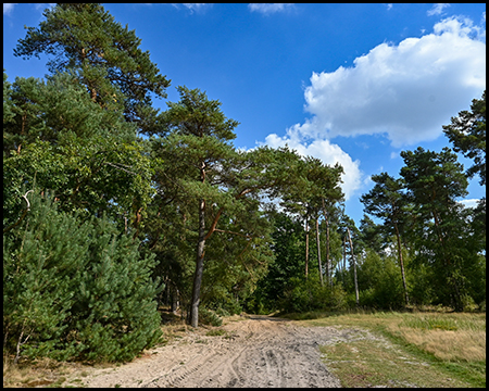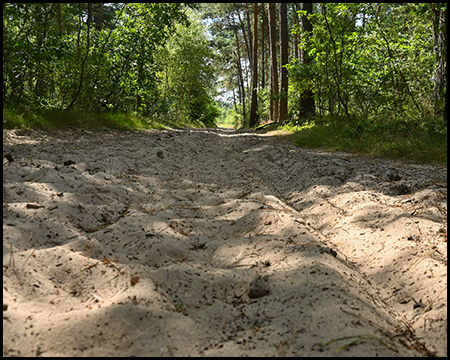 Die Runde ist in weiten Teilen schattig, bietet aber auch offene Passagen, in denen die Sonne ungehindert auf die Wege scheint. Der Charakter der Tour ist abwechslungsreich: von gemütlichen Waldwegen über historische militärische Spuren bis zu fordernden Sandpassagen. Wer nicht die komplette Runde gehen möchte, kann die Strecke einmal abkürzen oder einzelne Abzweigungen auslassen – muss dabei aber hinnehmen, auf einige schöne Eindrücke zu verzichten.