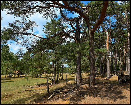 Nach Überqueren der Freifläche gibt es einen Abstecher zu einer alten Kiefer mit schönen Ausblicken auf den ehemaligen Flugplatz. Auf demselben Weg kehrt man wieder zurück zur Hauptroute.