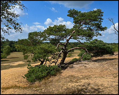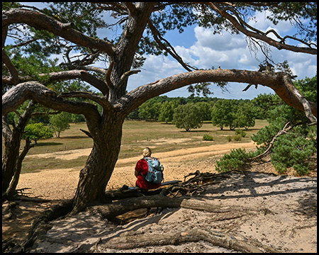 Die Wege sind zum Teil anspruchsvoll: lockerer Sand macht das Gehen stellenweise anstrengender, als es die moderate Länge von rund 14 Kilometern vermuten lässt. Vor allem in den sonnigeren Abschnitten kann das im Sommer schweißtreibend werden. Dafür bietet die Tour ein reiches Landschaftsbild: Kiefern- und Lärchenwälder wechseln sich mit Eichen- und Birkenbeständen ab. Es gibt Faulbäume und Heidelbeeren. An manchen Stellen sind Reste einer alten Heidelandschaft mit Heidekraut-Inseln und Wacholder zu sehen – ein Hinweis auf die frühere Plaggenwirtschaft, die hier einst das Landschaftsbild prägte.