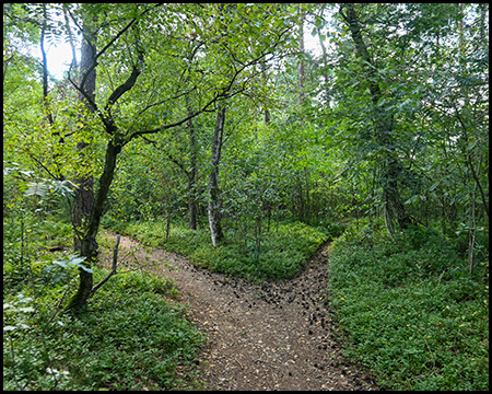 Kaum am Hubertusplatz gestartet, stößt man bereits auf die ersten historischen Spuren: mehrere alte Hügelgräber liegen entlang des Weges. Sie sind Kulturdenkmäler, die aus vorchristlicher Zeit stammen, doch ohne genaues Wissen gehen sie im Gelände fast unscheinbar zwischen Bäumen und Unterholz unter. Wer sie bewusst sucht, erkennt leichte Erhebungen im Boden – es sind stille Zeugen einer längst vergangenen Epoche. Der Weg macht zahlreiche Richtungswechsel, die den Weg gleichzeitig abwechslungsreich machen und Konzentration erfordern. Vor allem, wenn man ohne Navigations-Stimme in der Tasche unterwegs ist.