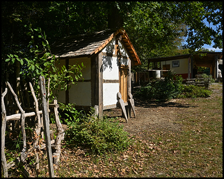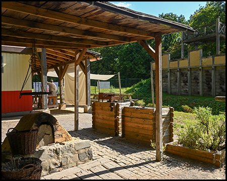 Auf der Innenseite der Befestigung geht es um das Thema Handwerk mit einer kleinen Fabrik und einem Unterstand für Handwerker. Mit etwas Glück kann man hier beim Schmieden zuschauen oder selber den Hammer schwingen.