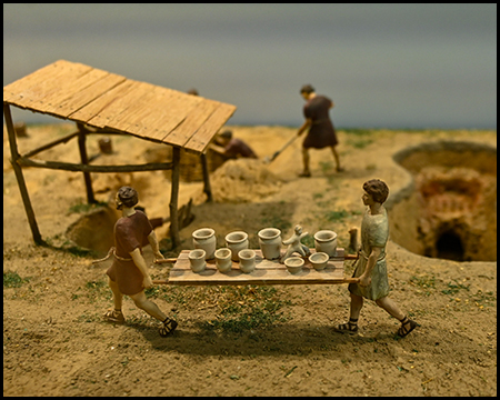 Hier geht es nicht um große Schlachten, sondern um den Alltag: Wie lebte ein Legionär und was trug er bei sich? Wie wurde Essen gelagert? Und wie funktionierte ein Militärlager überhaupt? Man erfährt, wie die ganzen Tonkrüge und Schalen hergestellt wurden, deren Scherben man zum Teil heute noch im Boden von Haltern am See findet.