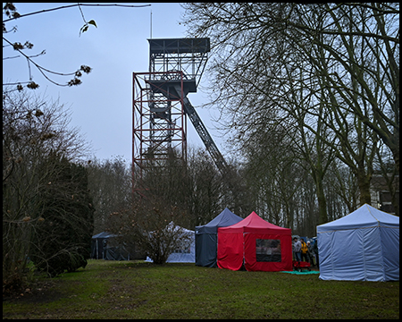 Derzeit ist das Fördergerüst eingerüstet bzw. hat ein Hilfsgerüst und wird bis Sommer 2026 saniert.