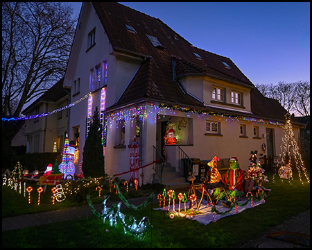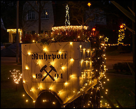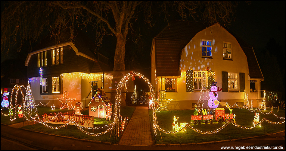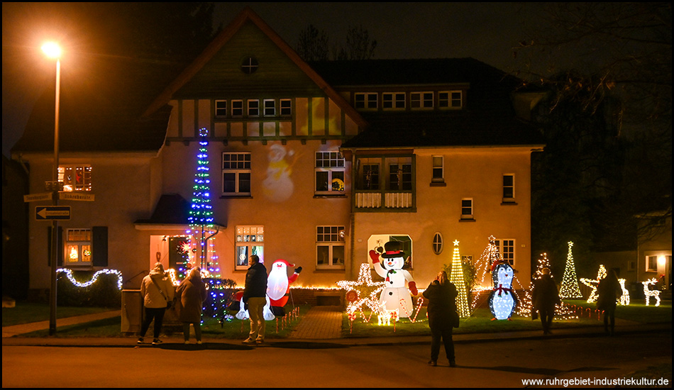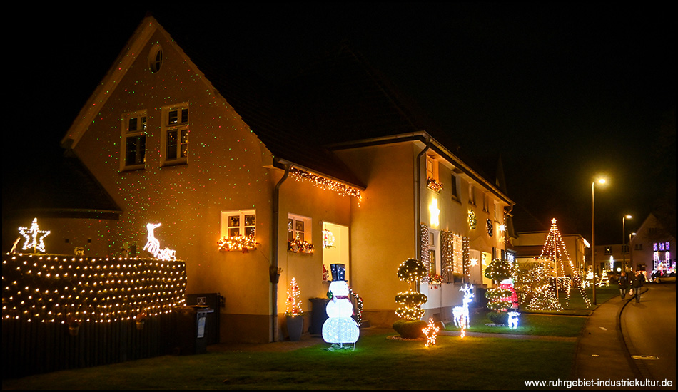 Der Stil erinnert stellenweise an US-amerikanische Vorbilder, bleibt dabei aber fest in der Siedlung verwurzelt. Zwischen Zechen-Architektur und gewachsenen Straßenräumen entfaltet sich eine besondere Mischung aus Überfluss, Kreativität und Herzlichkeit. Wer in der dunklen Jahreszeit durch Teutoburgia spaziert, erlebt Weihnachten nicht als einzelnes Ereignis, sondern als vielstimmiges, lebendiges Gesamtbild – überraschend, individuell und gerade deshalb so stimmungsvoll.
