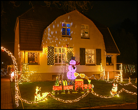 All das folgt keinem offiziellen Konzept. Die Weihnachtsdekoration entsteht völlig freiwillig, jede Partei schmückt nach eigenem Geschmack und eigenen Möglichkeiten. Gerade das macht den Reiz aus. Manchmal wirkt es fast wie ein augenzwinkernder Wettbewerb zwischen Nachbarhäusern – ein wenig wie in der Filmkomödie „Schöne Bescherung“, bei der immer noch eine Lichterkette mehr möglich scheint.