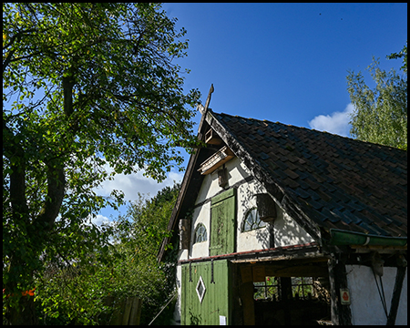 Vorbei an einem Tümpel – im Frühjahr mit vielen Fröschen – durchqueren wir einen Laubwald. Links liegt nun der Golfplatz des Golfclubs Unna-Fröndenberg. Er ist etwas verborgen hinter hohen Hecken und für Radfahrende ist die leichte Bergabfahrt gerade willkommene Erfrischung, sodass wir uns gar nicht lange aufhalten. An der Eulenstraße biegen wir auf dem begleitenden Weg rechts ab und queren die Straße kurz darauf links. Die „Eule“ ist übrigens eine bei Radfahrenden beliebte wie berüchtigte Strecke zwischen Fröndenberg und Unna, da sie von Fröndenberg aus eine sportlich herausfordernde Steigung besitzt.