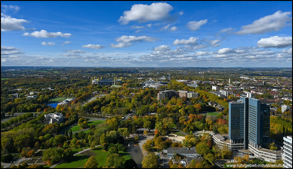 Besondere Landmarken sind die Skyline der Dortmunder Innenstadt, einige Halden des Ruhrgebiets, die auf diesen Seiten vorgestellt werden, diverse Kraftwerke an der Lippe und im Nahbereich das Westfalenstadion, der Phoenix-See, das ehemalige Hochofenwerk Phoenix-West und die Burg Hörde. Natürlich lässt sich auch der Westfalenpark selbst besonders gut überblicken.