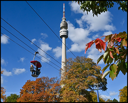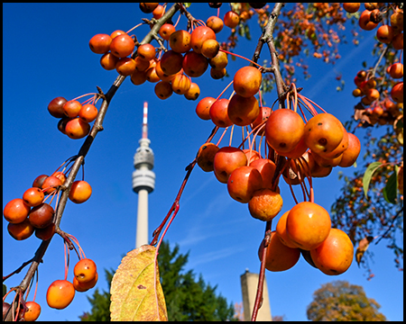 Und doch lässt sich all das noch einmal ganz anders erleben, wenn man den Blick hebt: Aus der Höhe des Florianturms offenbart sich das herbstliche Farbenspiel des Parks in seiner ganzen Weite – ein Panorama, das man so schnell nicht vergisst. Sie müssen dazu nur einmal weiterscrollen.