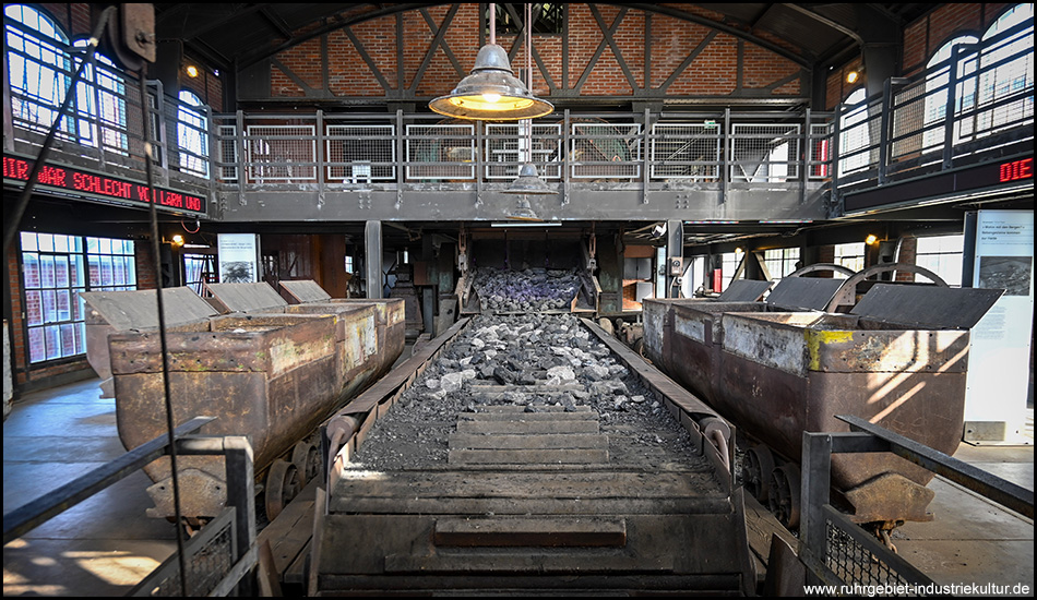 Von der Schachthalle ausgehend können Besuchende das Fördergerüst erklimmen, von dem sich ein weiter Blick über das tiefer gelegene Dortmund, Castrop-Rauxel und Herten bietet. Zunächst kann man sich allerdings auf zwei Ebenen die Halle anschauen und sich über die schwere, eintönige Arbeit mit Lärm, Staub und Körpereinsatz informieren.