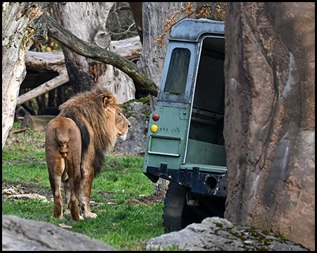Hinter den Brillenbären geht es nach dem Besuch bei den Elefanten weiter auf Afrika-Safari, denn hier befindet sich das vergleichsweise große Löwengehege. Mit Glück lassen sich Löwinnen und Löwen mit beeindruckender Mähne in einer afrikanischen Landschaft beobachten. Zusammen mit den Tigern im östlichen Teil lassen sich die beeindruckensten Jäger auf den Kontinenten anschauen. Das gelingt rings um das Gehege durch mehrere Standpunkte mit Blick – mit und ohne Glasscheibe.