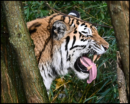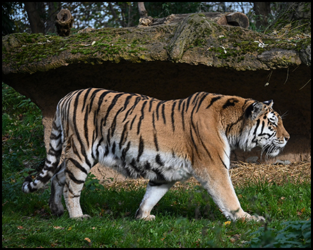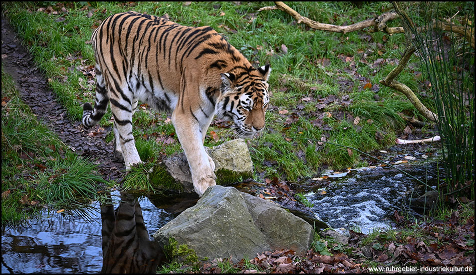 Gleich von mehreren Stellen und von einem Aussichtsturm lässt sich dieses Gehege ausgiebig beobachten. Mit etwas Glück zeigt sich das gestreifte, beeindruckende Tier auf seinem Streifzug durch das Gelände.