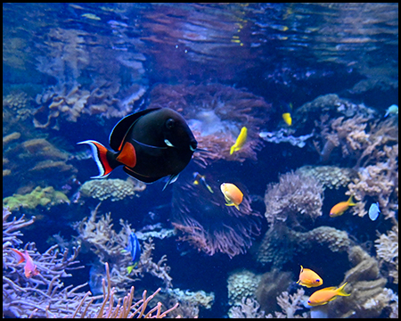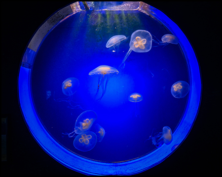 Nicht weit vom Eingang befindet sich das Aquarium mit dem anschließenden Gebäude Rio Negro. In mehreren Aquarien lassen sich viele bunte und exotische Fische beobachten und Quallen.