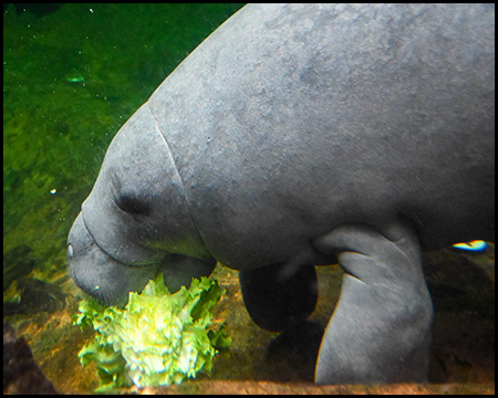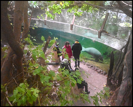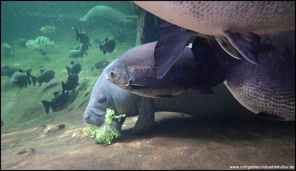 Am Rio Negro ist es tropisch warm. Im großen Wasserbassin mit Panoramaglaswand lassen sich die wohl gemütlichsten Tiere des Planeten beobachten – Seekühe. Es sind Pflanzenfresser und gelegentlich kommen sie an die Wasseroberfläche zum Atmen.